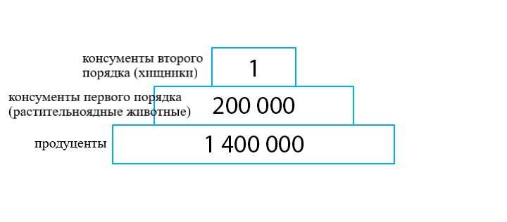 Постройте экологическую пирамиду чисел степи (Летом), если количество особей, кроме микроорганизмов и почвенных животных на 1000 м составляет: продуцентов – 1400000; консументов первого порядка (растительноядных животных) – 200000; консументов второго порядка (хищников) – 1. Масштаб изображения свободный.