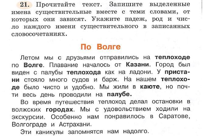 Выделенные слова:Теплоходе,Волге,Казани,пристани,каюте,городах.
