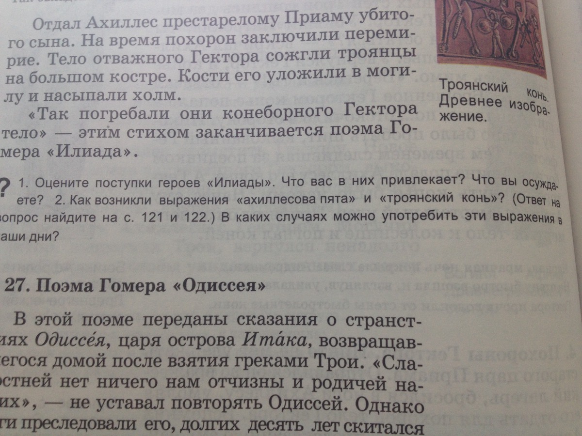 Как возникли выражения "ахиллесова пята" и "троянский конь"? (Ответ на вопрос найдите на с.121 и 122.) В каких случаях можно употребить эти выражения в наши дни?