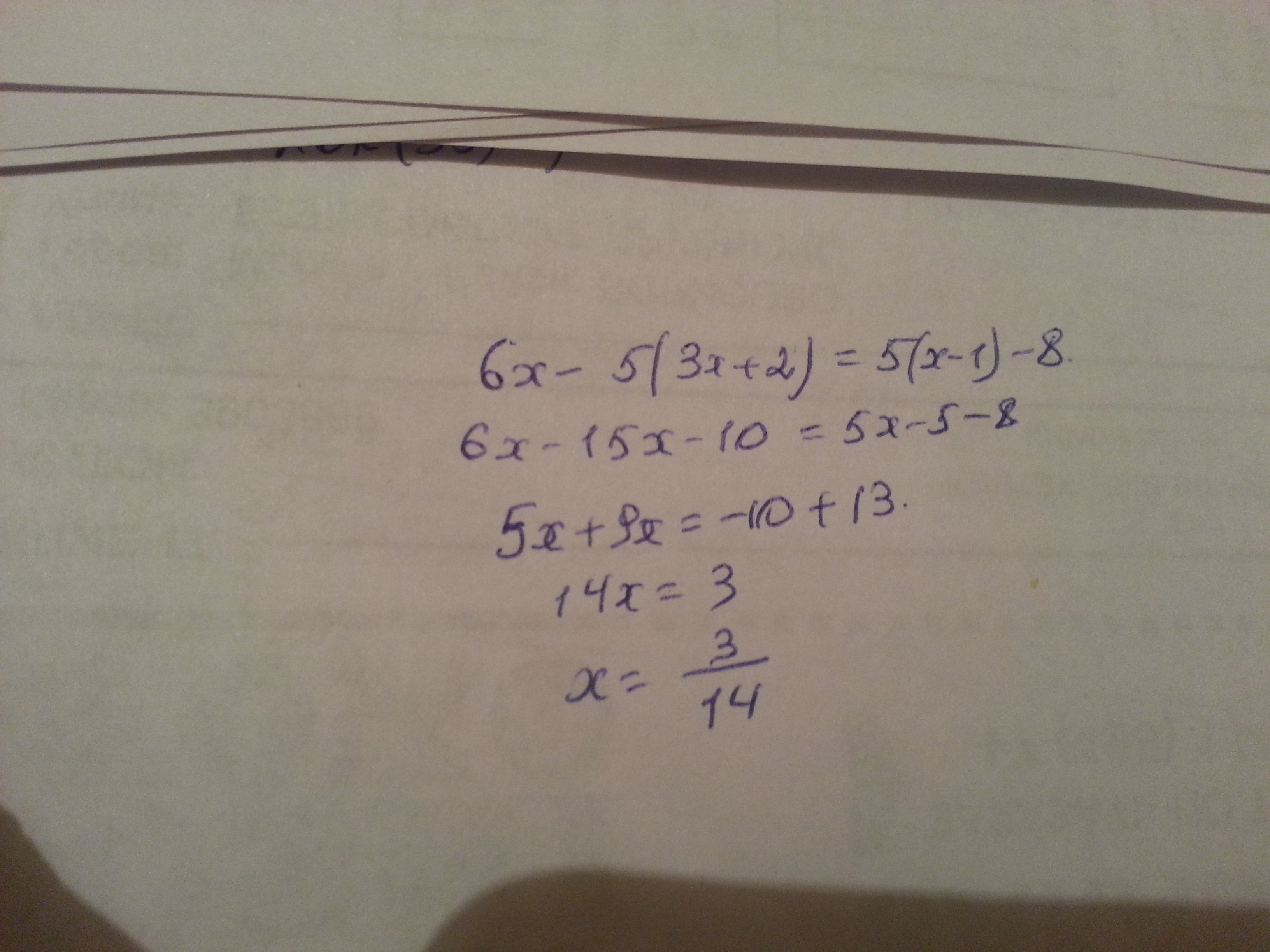 6x-5(3x+2)=5(x-1)-8 решете уравнения