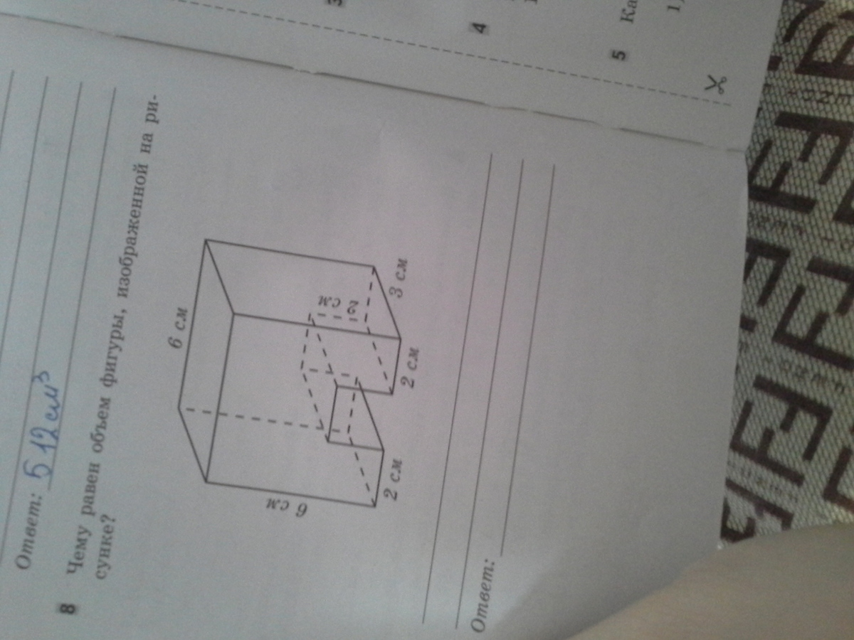 2) найдем объем вырезанной и удаленной фигуры, тоже параллелепипеда: